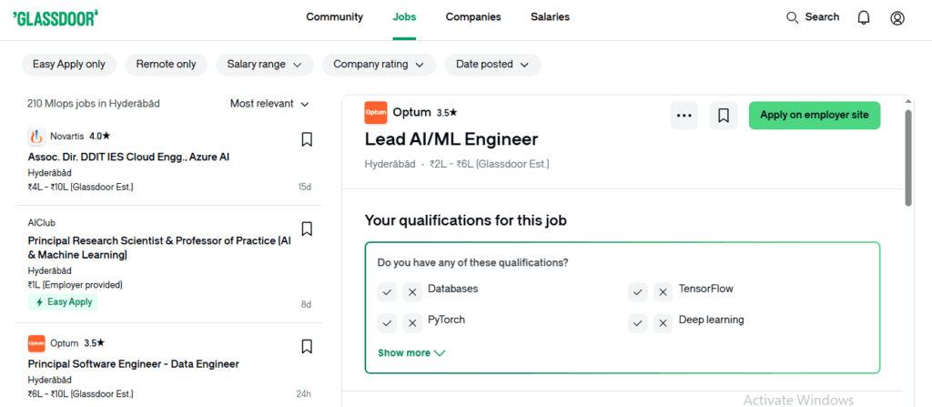 Roles include MLOps Engineer, ML Engineer, AI DevOps Engineer, Data Scientist, and Cloud AI Specialist.